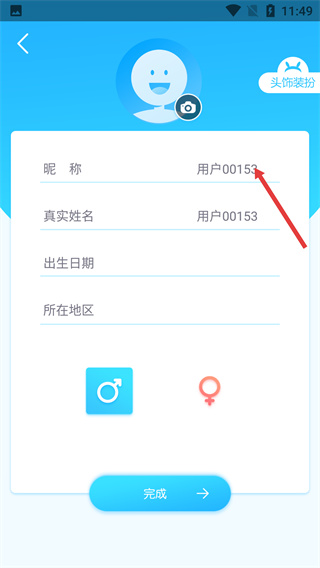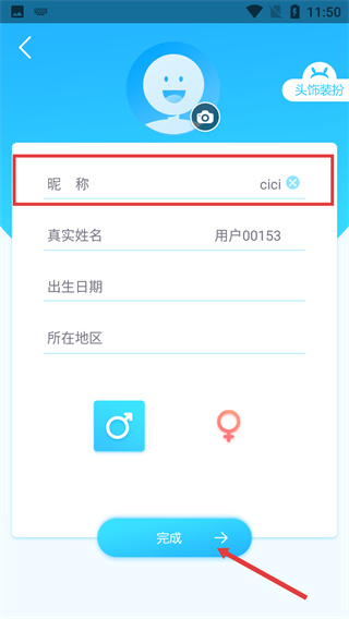 4、將原有昵稱修改為目標(biāo)內(nèi)容,確認(rèn)昵稱修改內(nèi)容無(wú)誤后,點(diǎn)擊頁(yè)面底部的【完成】按鈕,保存本次個(gè)人信息的修改操作。