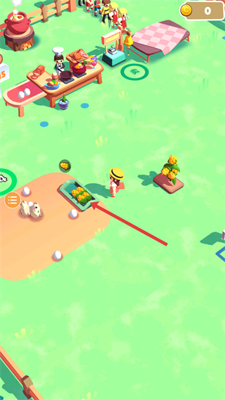 3、點(diǎn)擊指向的容器可獲取對應(yīng)物品,同時(shí)場地中的雞群會(huì)產(chǎn)出【雞蛋】,這是制作菜品所需的基礎(chǔ)材料,需持續(xù)收集。