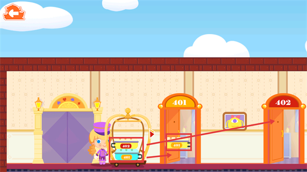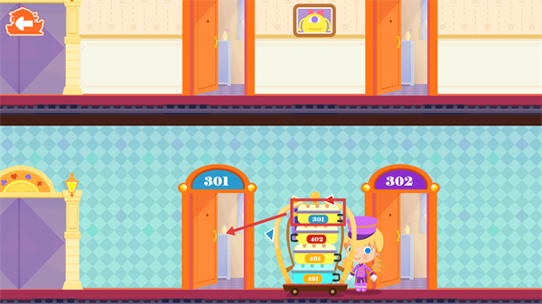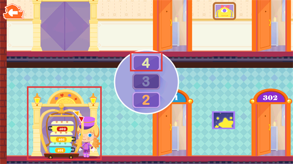 3、點擊樓層選擇器中的【4】,將標有【402】-【401】的行李送到對應樓層的房間。