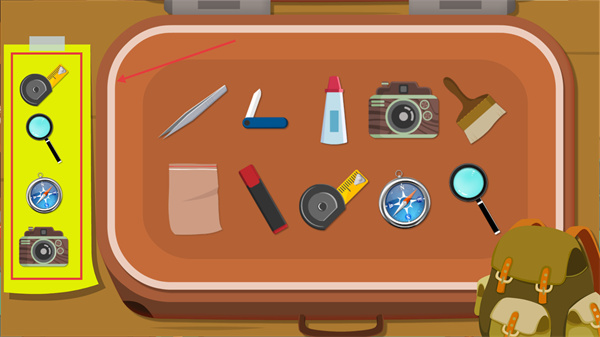 4、從工具箱中選取【放大鏡】【指南針】等道具,為后續(xù)的探索類玩法做準備。