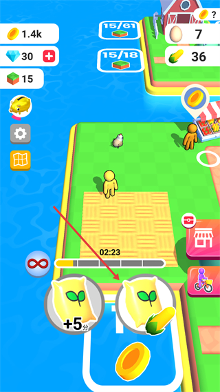 4、玉米成熟后,倒計(jì)時(shí)至【02:36】,點(diǎn)擊鐮刀道具收割玉米,獲取種植收益。
