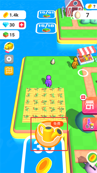 3、田地播種后,點(diǎn)擊紅色框內(nèi)標(biāo)【免費(fèi)】的黃色澆水壺道具,為種植的作物澆水,加速生長進(jìn)程。