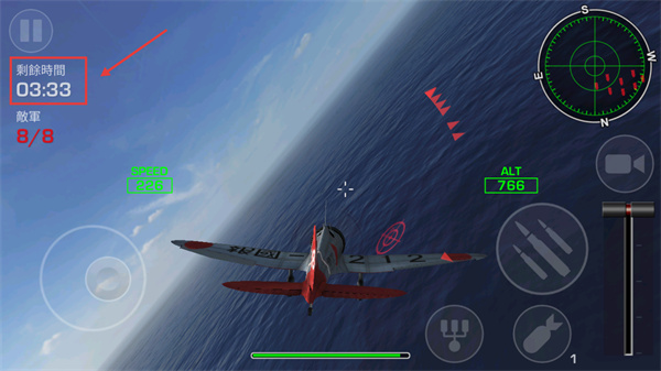 4、任務(wù)有【03:33】的剩余時(shí)間限制,需在時(shí)限內(nèi)摧毀全部【8/8】敵軍船艦,完成任務(wù)目標(biāo)。
