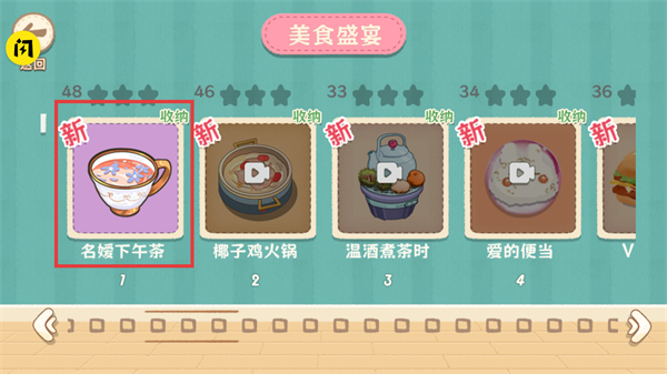 2、進(jìn)入【美食盛宴】,點(diǎn)擊【名媛下午茶】開啟收納。