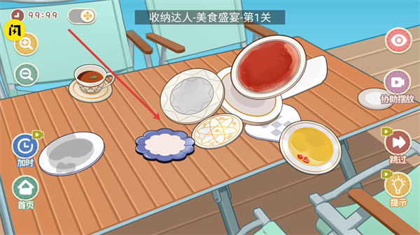 1、在【收納達(dá)人】界面,點(diǎn)擊紅色框內(nèi)【沒事盛宴】關(guān)卡,進(jìn)入該收納整理關(guān)卡。