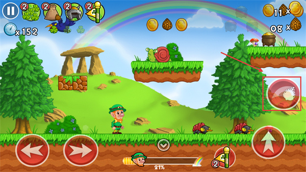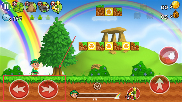 2、通過左右方向鍵操控角色移動,優(yōu)先收集場景中的【四葉草】道具,積累資源推進關卡進度。