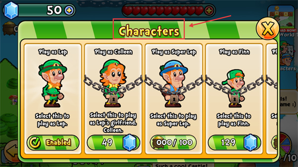 4、在【Characters】界面,可消耗對應資源解鎖新角色,不同角色會帶來差異化的關卡體驗。