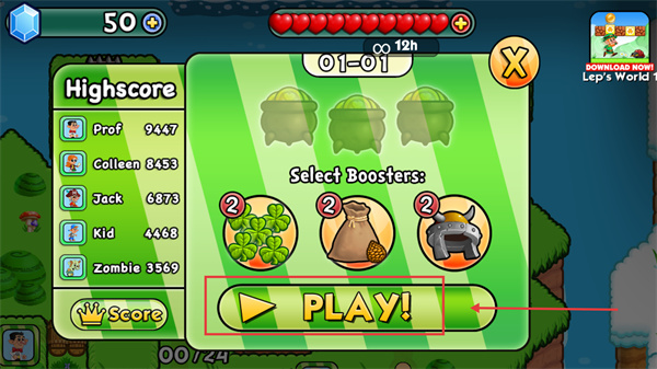 1、點擊【PLAY!】進入關卡,增益道具可提升關卡收益。