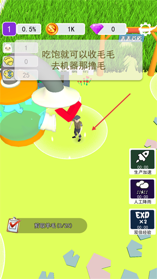 2、羊駝進(jìn)食完成后,控制角色前往機(jī)器處收集羊毛,獲取生產(chǎn)原料。