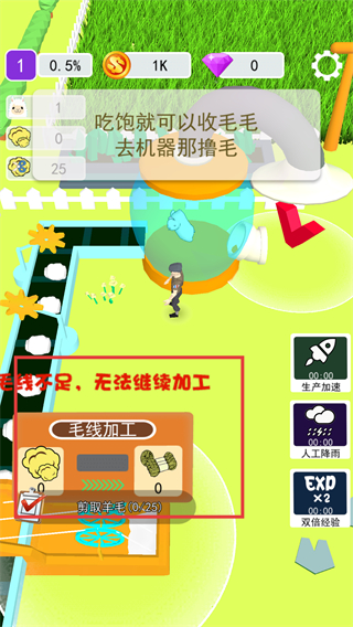 4、能夠使用各種道具來(lái)協(xié)助完成挑戰(zhàn),并通過(guò)加工和出售羊毛來(lái)?yè)Q取更多的資金用于持續(xù)發(fā)展。