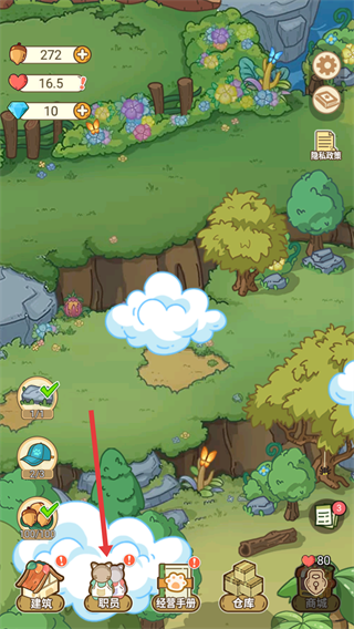 1、點擊底部【職員】按鈕,進入職員管理界面,準備招募新動物。