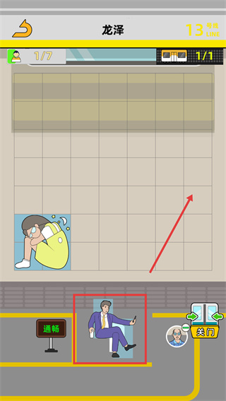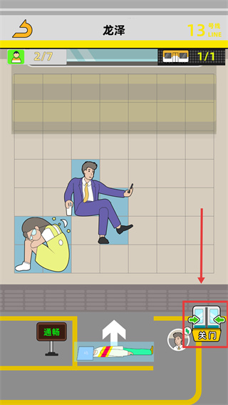 4、當車廂內(nèi)乘客數(shù)量達標后,點擊【關(guān)門】按鈕完成當前關(guān)卡的裝載流程,推進游戲進程。