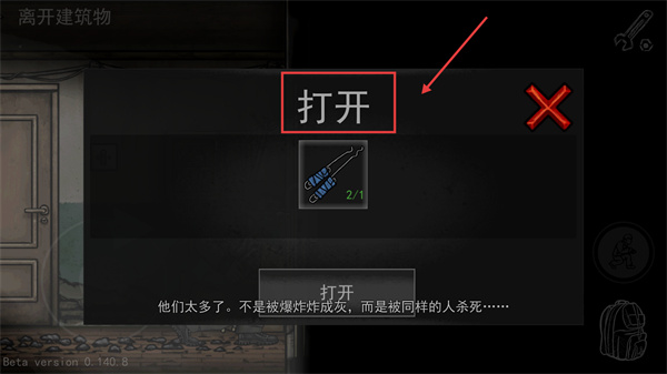3、在【離開建筑物】環(huán)節(jié),使用對(duì)應(yīng)道具后點(diǎn)擊【打開】按鈕,解鎖門的交互以完成場景切換。