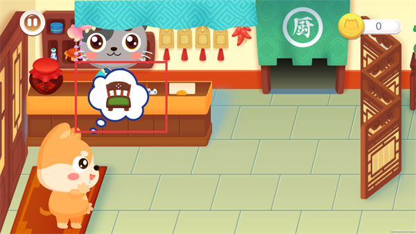 2、在店鋪界面中,點擊小貓想法里的【椅子】元素,完成對應(yīng)操作,以此推進店鋪內(nèi)的互動流程。